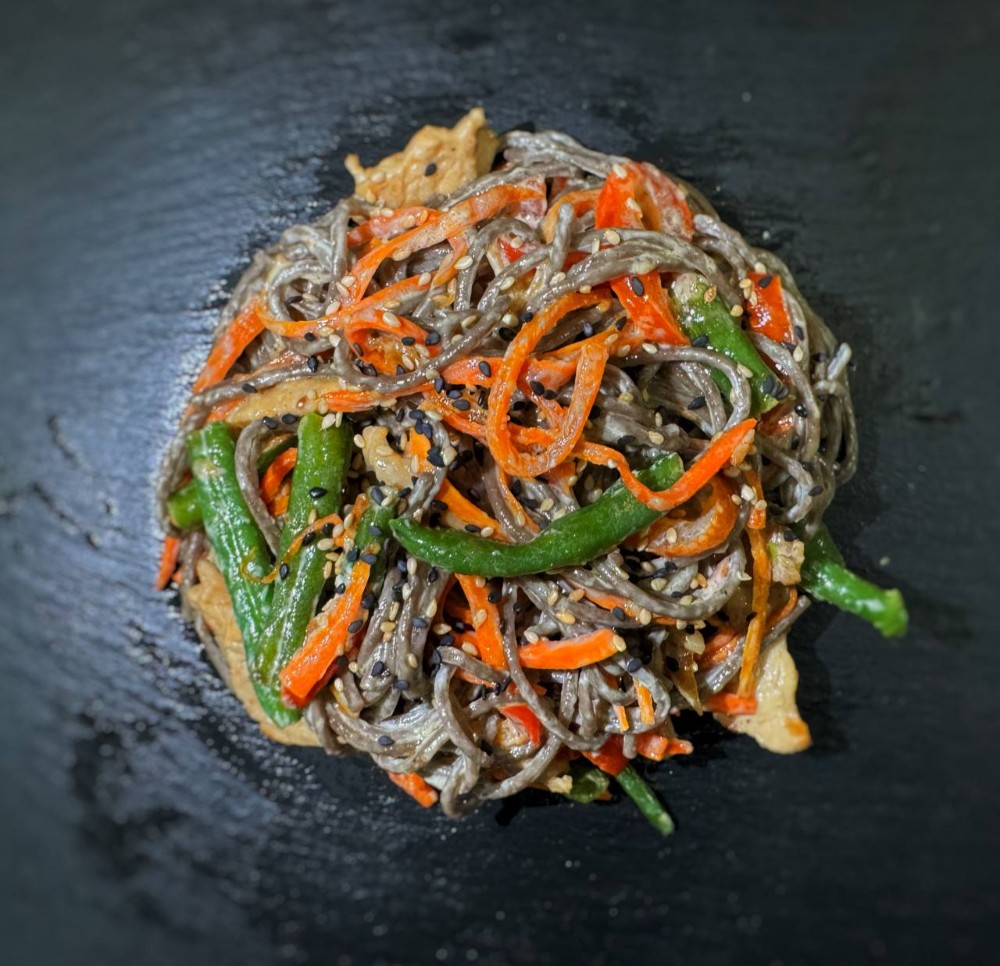 Склад: Локшина, Болгарський Перець, Морква, Квасоля зелена, Соєвий соус, Кунжут, Огірок
